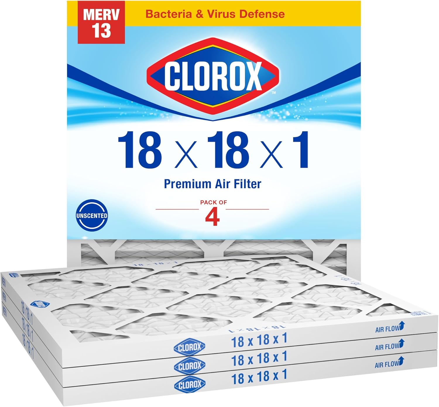 Clorox 18x18x1 Air Filter 4-Pack, Premium Pleated Furnace Filters